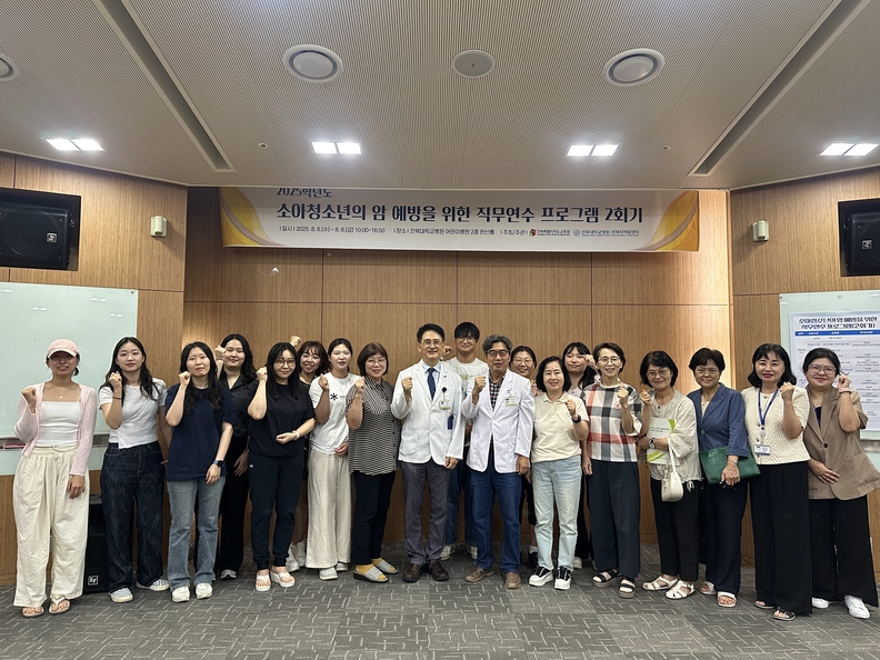 교육은 지난 7월 30일부터 8월 1일, 8월 6일부터 8일까지 총 2차례에 걸쳐 어린이병원 2층 완산홀에서 진행됐으며, 전북지역 교사 39명이 참여해 암 예방에 대한 전문 지식을 배우고 소아·청소년을 위한 건강한 생활습관 교육 역량을 키웠다.