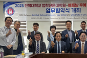 전북대학교 법학전문대학원(원장 정영선)이 베트남 후에대학교 법학대학과 학술 및 교육 연구 분야 협력을 위해 업무협약을 체결했다. 협약식은 지난달 30일 오후 2시 전북대 법학전문대학원 5층 회의실에서 전북대 정영선 법학전문대학원장과 후에대학 응우옌 두이 프엉 법학대학 부학장 등 양 기관 주요 관계자들이 참석한 가운데 열렸다. 후에대학교는 베트남 국립 거점대학으로, 영국의 글로벌 대학평가기관 QS(Quacquarelli Symonds, QS)가 최근 발표한‘2025년 아시아 대학평가(Asia University Ranking 2025)’순위 348위에 오른 주요 대학이다. 이번 협약은 지난 3월 전북대 법학연구소와 베트남 후에대학 법학대학 간 교류 논의가 시작되면서 양 대학 간 공식 협력으로 이어졌다. 이날 협약에 따라 양 대학은 법학박사(JD)·법학석사(LLM)·박사(PhD) 과정을 포함한 대학원 프로그램에 협력하고, 공동 학술대회·심포지엄·전문가 교육 워크숍을 공동으로 개최하기로 했다. 또한 교수·학생·연구원 교류, 방문 교수 프로그램 등을 함께 운영해 대학 간 역량 강화를 모색할 방침이다. 정영선 전북대 법학전문대학원장은 이날 “이번 협약은 법학 교육과