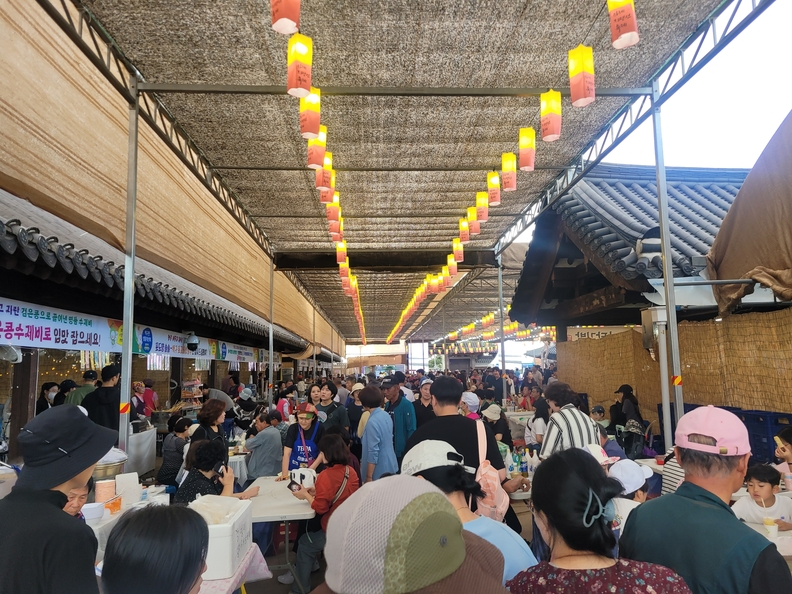 싸리콩이게임을 예약하지 않았다는 원성을 들으면서, 중앙광장과 쌍룡광장을 거쳐 싸리콩이 빌리지로 이동했다. 싸리콩이게임은 세계적으로 큰 인기를 끈 드라마 '오징어 게임'을 축제 감성에 맞는 민속놀이로 재해석한 체험형 콘텐츠다. 9일과 국내 대항전과 10일 글로벌 대항전으로 나뉘어 진행되며, 국적과 나이에 상관없이 누구나 참여할 수 있는 열린 무대로 참가자에게는 기념 티셔츠와 지역 상품권이 증정되며, 국내 대항전 우승자에게는 순금 1돈의 특별한 시상도 예정돼 있었다고 했다. 이날 축제장 곳곳에서 싸리콩이게임 티셔츠를 입은 시민들을 만날 수 있었다.