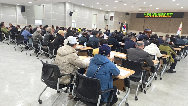 이번 회의는 부안군 이장 임기가 올해 말에 임기 만료됨에 따라 이장·반장·부녀회장 등 리하부조직을 재정비하기 위해 개최되었으며, 개발위원 구성과 이장 등 리하부조직 정비 절차에 대하여 전반적으로 설명하고 질의하는 시간을 가졌다.