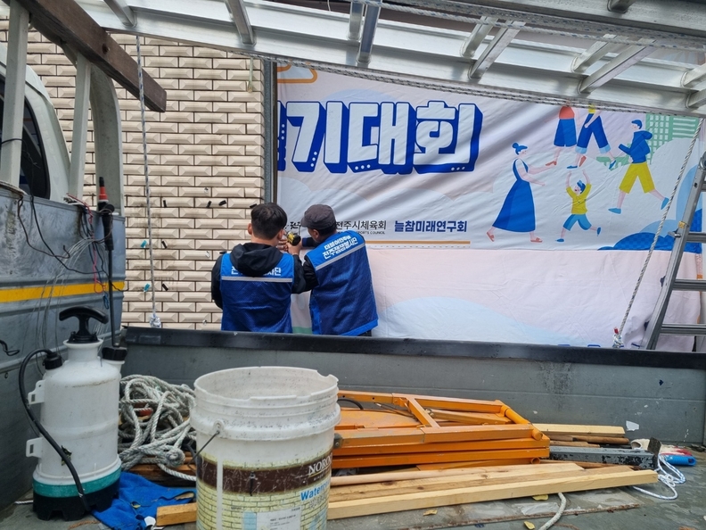 김 대표는 평소 해당 지역의 노후 빈집과 파손된 창고 문제에 관심을 가져왔으며, 앞서 행사에서 사용된 현수막을 활용해 창고 문을 대신 제작하기로 했다. 봉사단은 현수막 크기를 재단한 뒤 미싱 작업을 거쳐 튼튼한 문 형태로 완성하고, 이후 회원들이 힘을 모아 현장에 설치하며 창고를 말끔하게 정비했다.