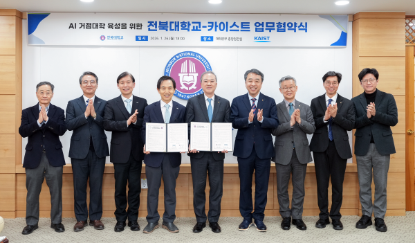 양오봉 전북대 총장은 “이번 협약은 AI 거점대학 육성 정책을 대학 간 협력으로 구체화하는 의미 있는 출발점”이라며 “카이스트와 함께 AI 교육과 연구의 새로운 협력 모델을 만들어 국가와 지역사회 발전에 기여하겠다”라고 밝혔다.